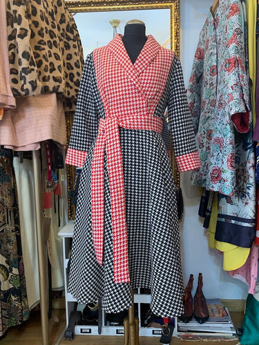 Vestido de punto con estampado de pata de gallo.