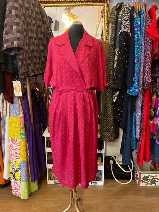 Vestido Vintage Original 80’s Rojo con estampado beige